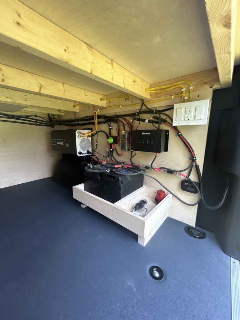 Self sufficient lithium battery bank, fully automatic renewable energy for on the go. Multi way charging for 12V and 120V applications.